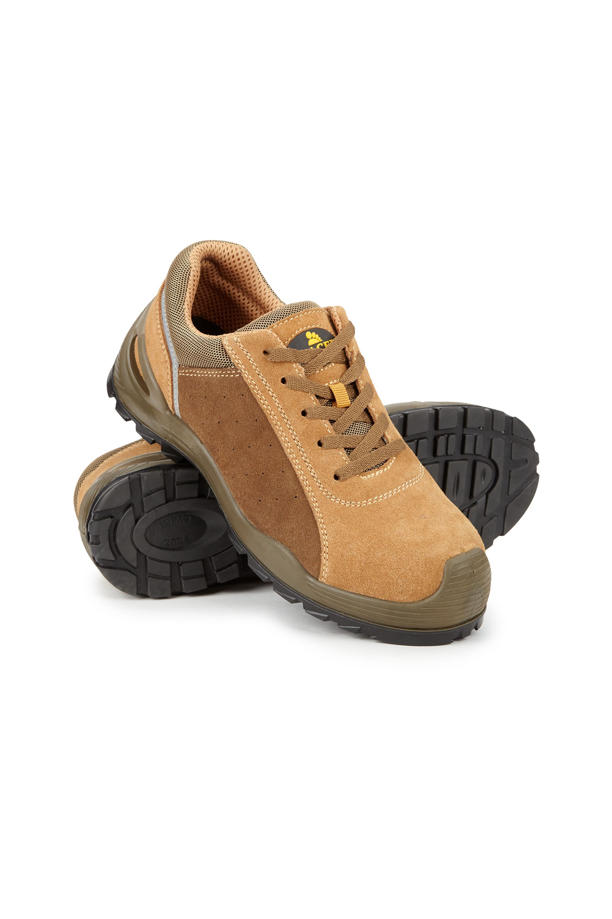 ? Особенности конструкции: верх обуви - воплощение современного дизайна, оригинальное цветовое решение в сочетании бежевого и коричневого цветов замши. Пресс-форма подошвы обуви имеет новый, модный дизайн. Дополнительные заливы полиуретаном носочной и пяточной частей обуви эффективно защищают от механических повреждений. Обувная колодка эргономичной формы, к заднику полуботинка пришита петля из полиэстера для удобства снятия обуви. Верх полуботинок прошит армированной п/э нитью. Прочные плоские плетеные шнурки из полиэфира.