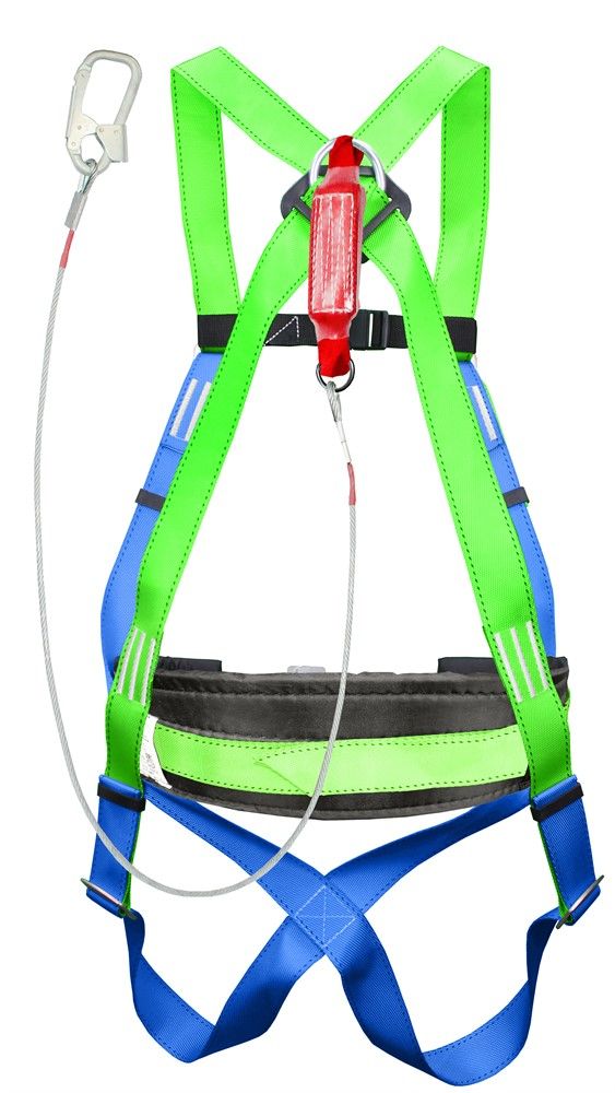УС 2 аБЖ Ук - Страховочная система с наплечными и набедренными лямками, уширенным кушаком, со стропом из металлического троса в ПВХ оболочке с амортизатором.