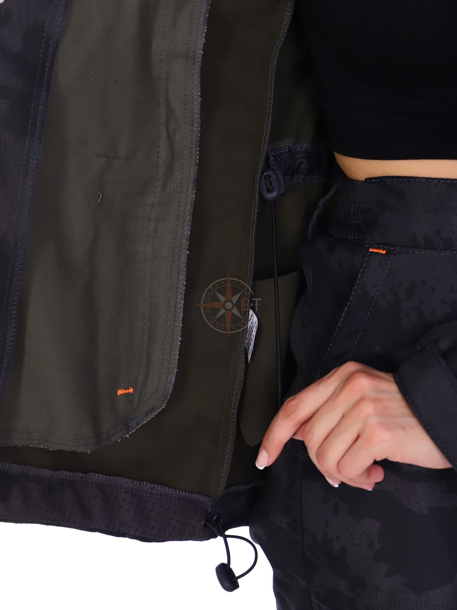 Костюм состоит из брюк и приталенной куртки средней длины. По низу куртки и в районе талии предусмотрены анатомические утяжки. Куртка застёгивается на центральную молнию. Капюшон с регулировкой посадки. Четыре прорезных кармана с молниями на полочке куртки, а также на левом рукаве один прорезной карман на молнии Брюки с высокой посадкой, пояс-резинка с широкими шлевками под ремень; на брюках два кармана с молниями на уровне колен и два боковых кармана с отрезным бочком. +5C +15C. Рекомендации по уходу: стирка без предварительного замачивания при t до 40С° с применением мягких моющих средств. Сушить при комнатной температуре. Не подвергать ткань отбеливанию и химчистке!