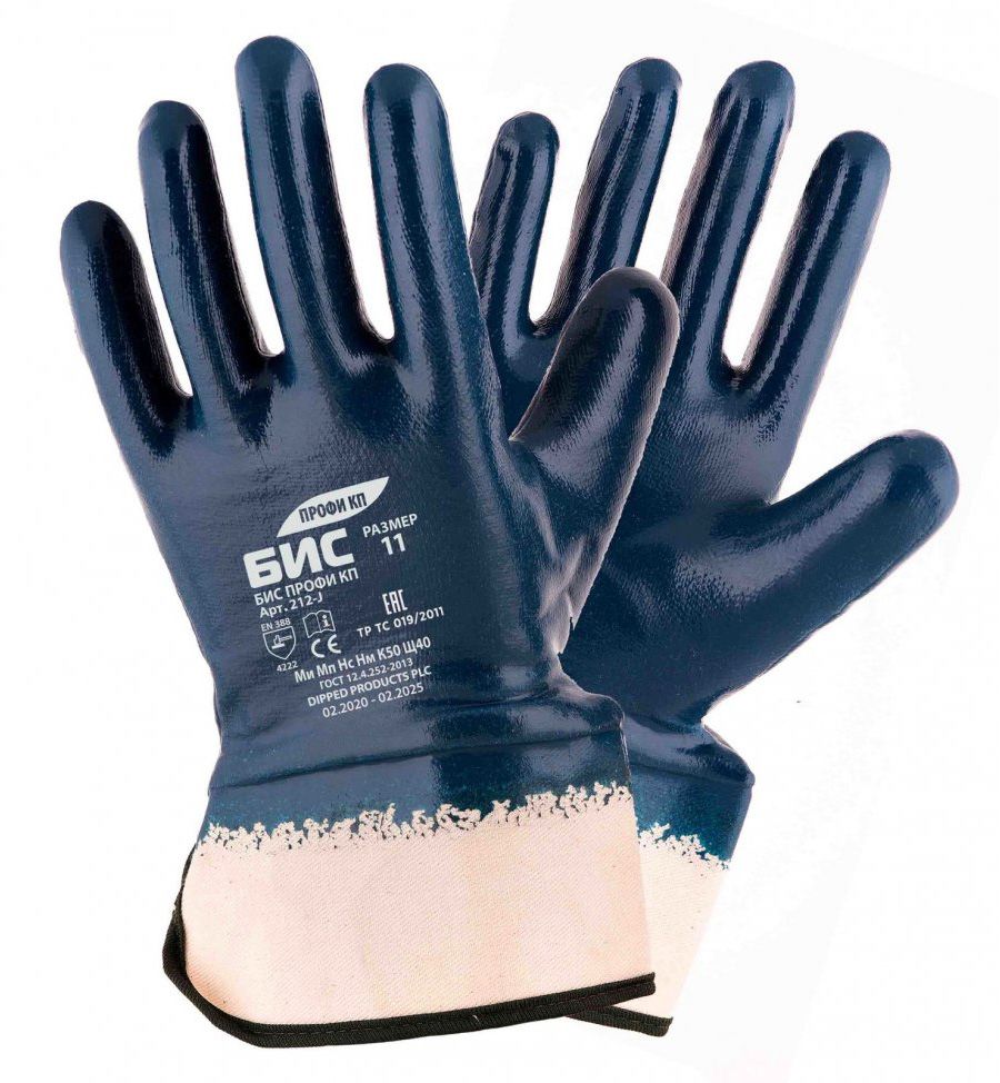 Перчатки Бис Профи КП (арт. 212-J) имеют усиленное многослойное высококачественное нитриловое покрытие, которое обеспечивает превосходную защиту рук от различных механических воздействий, от воздействия нефти и нефтепродуктов, различных кислот и щелочей, масел и жиров, в зоне нитрилового покрытия.