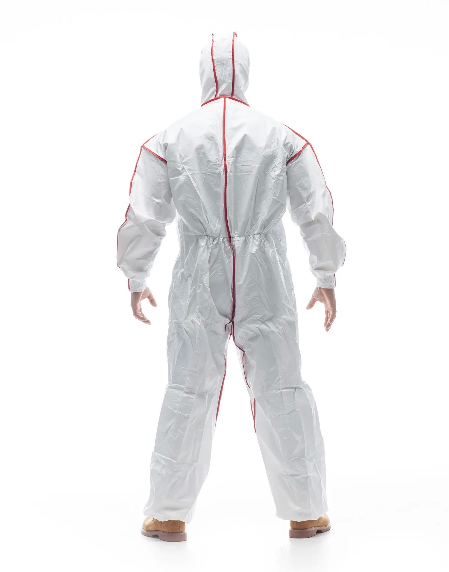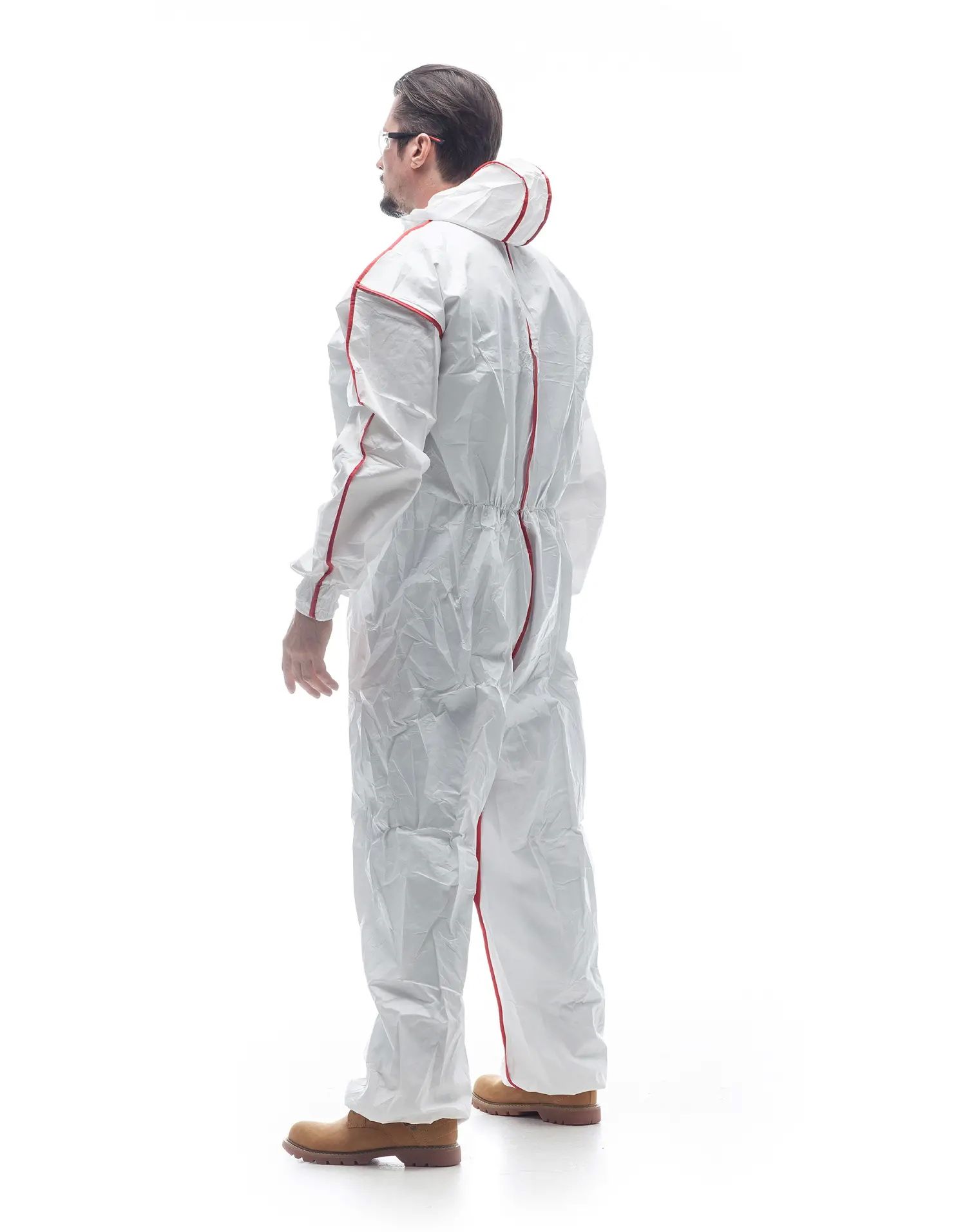 Материал изделий прочный и надёжный, что наделяет комбинезоны повышенной износостойкостью. Швы, проклеенные ПВХ-лентой, препятствуют проникновению влаги вовнутрь, а защитная планка застёжки защищает от попадания пыли и грязи в замок молнии. Манжеты комфортно облегают руку, трёхкомпонентный капюшон надёжно и удобно покрывает голову.