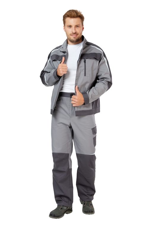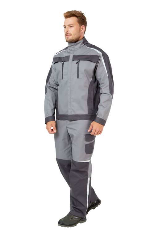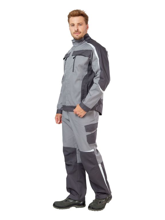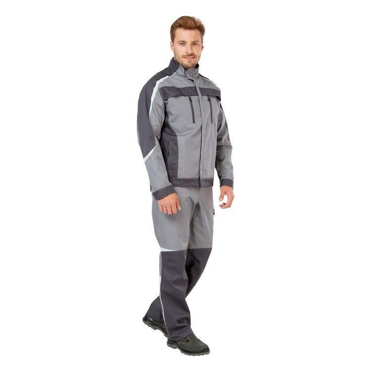 Костюм - куртка и брюки из прочной ткани с влагоустойчивой и малосминаемой обработкой, с фурнитурой YKK. Каждый комплект в индивидуальной упаковке из спанбонда.