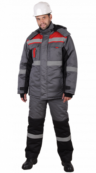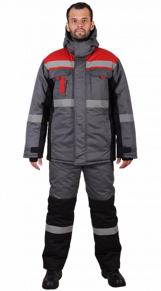 Костюм утепленный мужской Город c СОП предназначен для защиты от общих производственных загрязнений и механических воздействий, имеет 4 класс защиты от пониженных температур воздуха и ветра, для эксплуатации в I, II, III, IV и особом климатических поясах. Данное изделие является частью коллекции профессиональной одежды Город производства компании ПЕНТАЛАБ. В данной коллекции представлены летние костюмы мужские и женские, халаты, жилеты, летний и утепленный полукомбинезон. Купить утепленный рабочий костюм можно оптом и в розницу в нашем интернет магазине. Данное изделие имеет светоотражающие полосы и имеет притачной утеплитель. Костюм выполнен из прочной и плотной ткани TC TWILL, прошит сверхпрочными толстыми (70АП) нитками серого цвета с армированным сердечником. Центральная супатная застежка на усиленной морозостойкой двухзамковой молнии, контактной ленте, втачные рукава, воротник-стойка и пристегивающийся на молнию капюшон отделаны с внутренней части флисом. Рукава с напульсниками из флиса и ветрозащитными манжетами, объем по рукавам регулируется патами. По линии талии обьем регулируется кулисой. Куртка оснащена двумя боковыми внутренними и двумя нагрудными накладными многофункциональными карманами. Вход в боковой карман расположен в шве соединения частей полочки и закрывается на морозостойкую молнию. Под ветрозащитным клапаном – потайной карман с молнией (для документов формата А4). Утепленная подстежка оснащена ветрозащитной юбкой, двумя внутренними накладными карманами. Полукомбинезон застегивается на усиленную морозостойкую двухзамковую молнию. По линии талии объем регулируется резинкой. Полукомбинезон оснащен двумя боковыми внутренними карманами. Внешний слой утепленной подстежки выполнен из ветрозащитной ткани, обеспечивающей не продуваемость изделия в сильный ветер при низких температурах, комфортный микроклимат под одеждой и исключает миграцию утеплителя. Этот костюм мы рекомендуем для руководителей, инженеров, а так же для специалистов, чья профессиональная деятельность предполагает работу в условия сильного ветра и сверхнизких температур. Цвет: темно-серый/красный/черный Ткань верха: TC TWILL, 65% п/э, 35% хлопок, 240 г/м2. Утеплитель: Ultra®, 150 г/м2: полочки и спинка - 3 слоя; рукава и полукомбинезон - 2 слоя Размер: с 88-92 по 120-124. Рост: 170-176, 182-188.