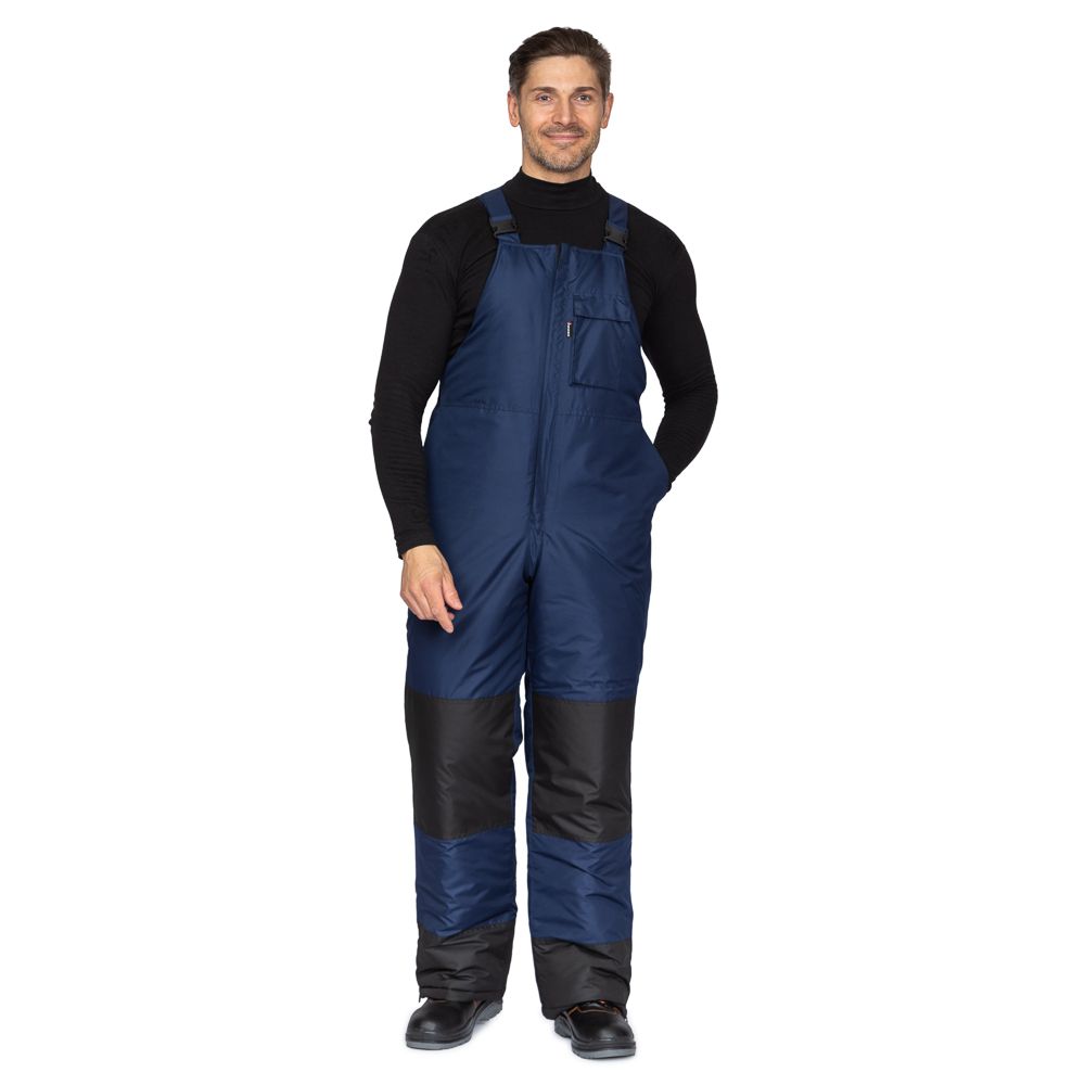 • утеплённый комбинезон на регулируемых бретелях с пряжками с возможностью регулировки ширины при помощи молнии и манжет в нижней части брючин;