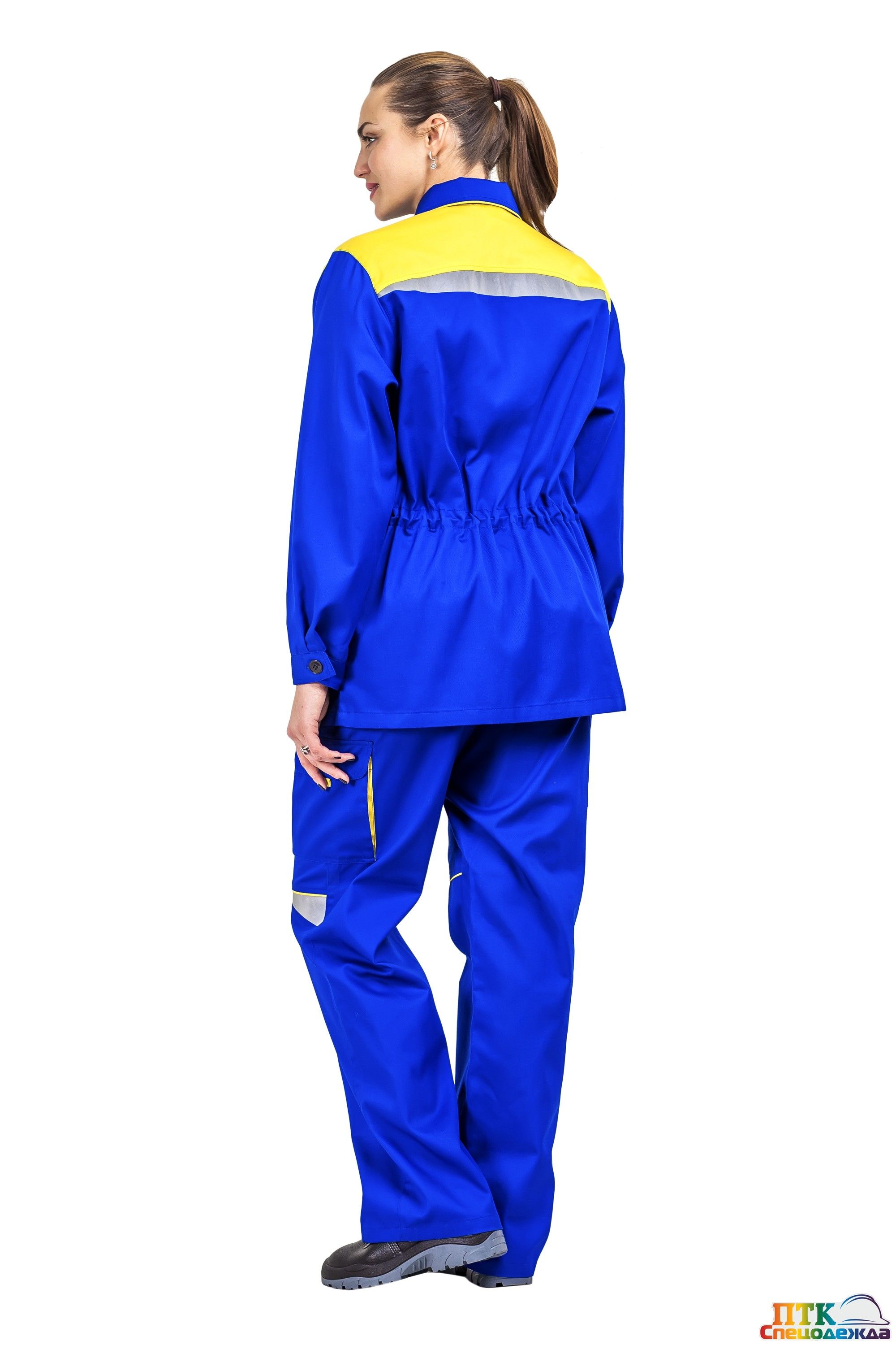 • Визуальные элементы защиты: фигурные светоотражающие элементы по швам притачивания кокеток полочек и спинки куртки, в брюках - на уровне колен.Цвет: Василек/желтый,