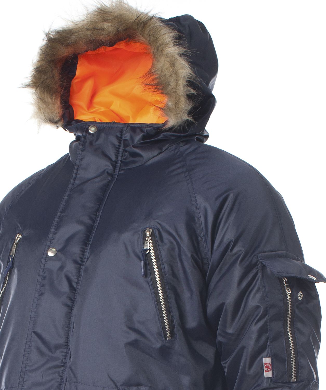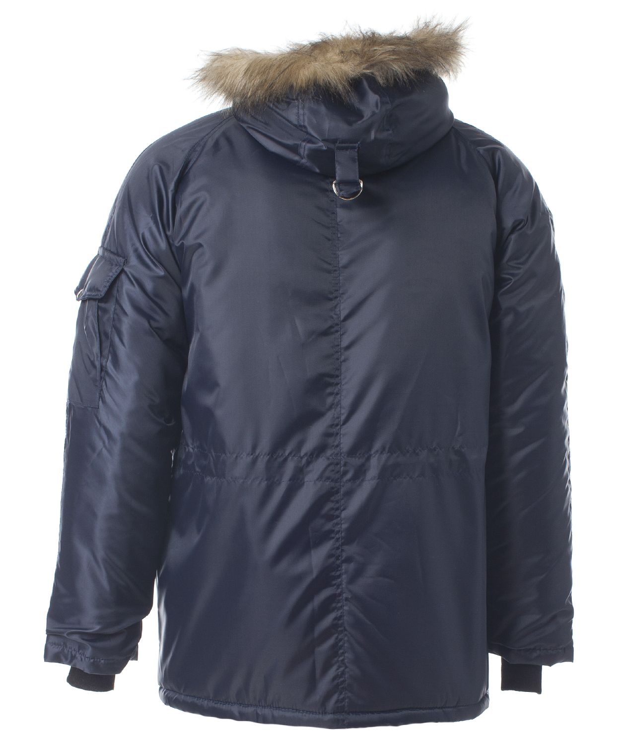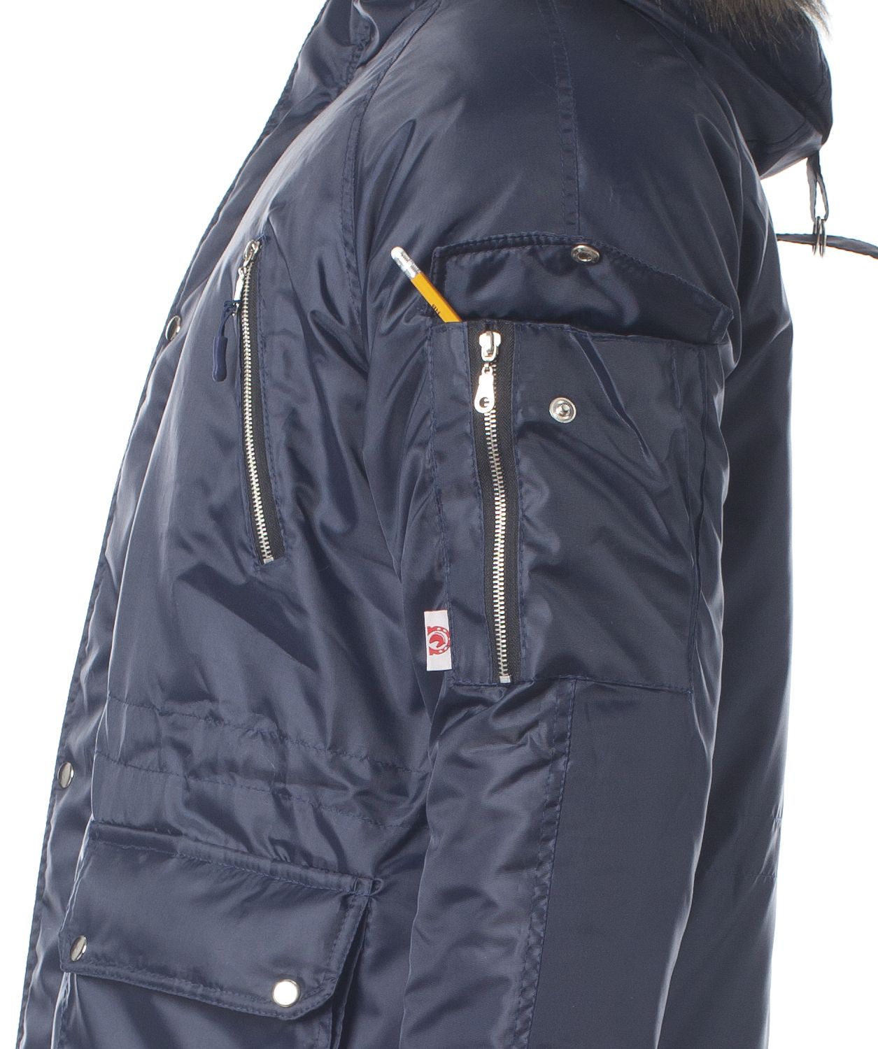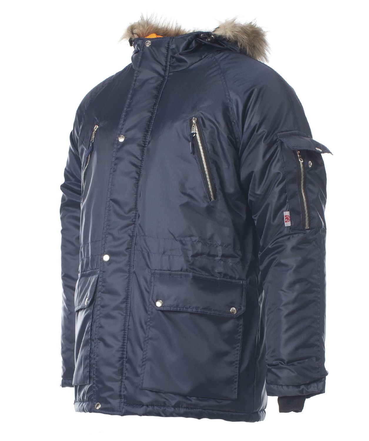 Утепленная куртка с застежкой на металлическую молнию и клепки, капюшон с опушкой из исскуственного меха, накладные нижниие карманы и врезные нагрудные, имеется карман на рукаве и два внутренних на липучках. Кулиска по линии талии регулируемая.