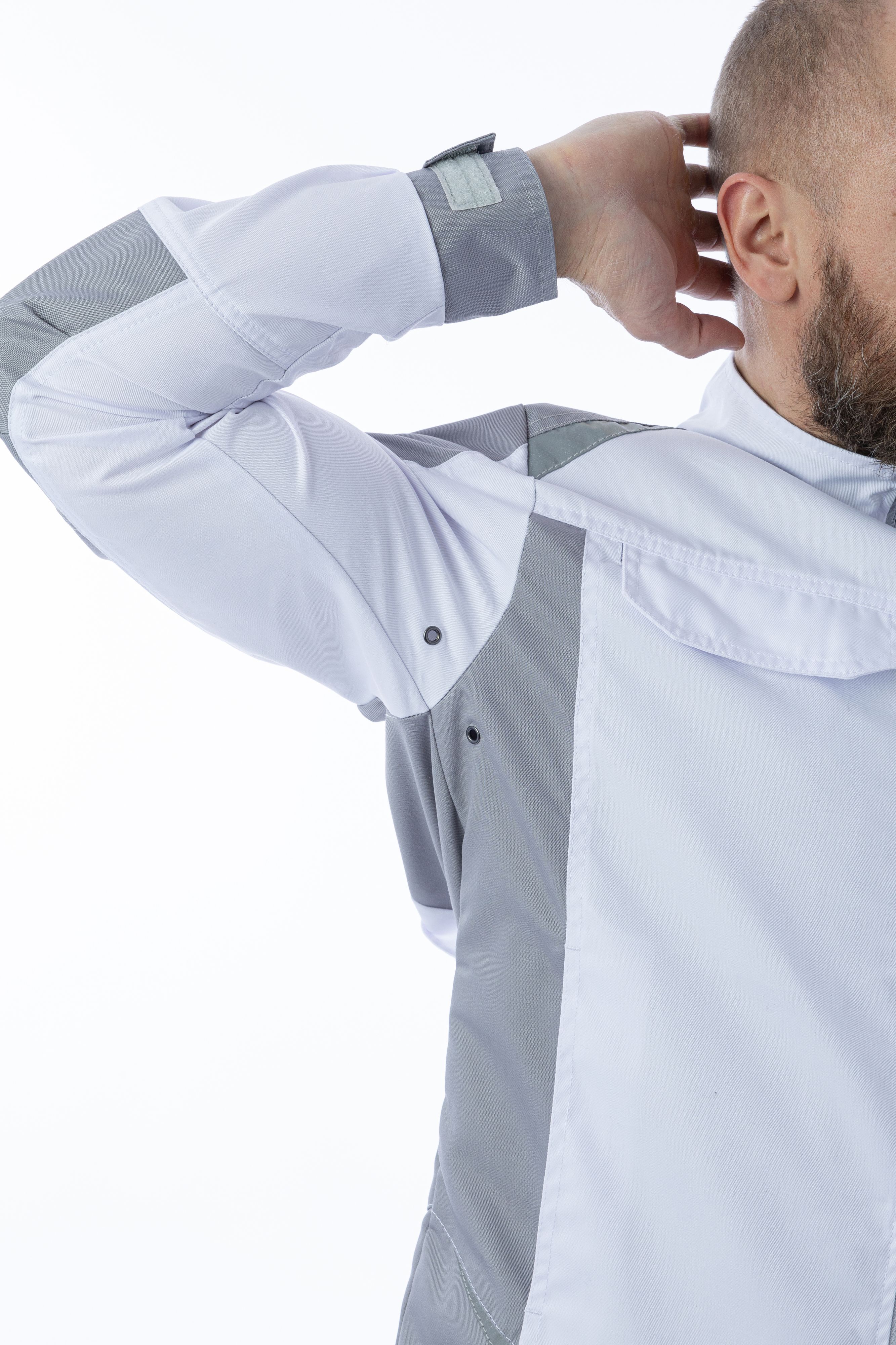 РазделКурткиСезонЛето/осеньПолМужскойОсновной цветБелыйЦвет отделкиСерыйТехнологииОтделка Easy CareЗащитные свойстваОт общепроизводственных загрязнений
