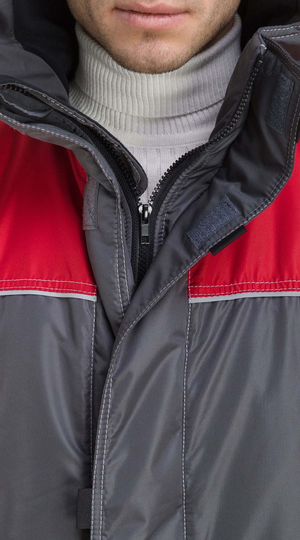 Куртка ГОРОД-ЗИМА, цв. серый/светло-серый/красный