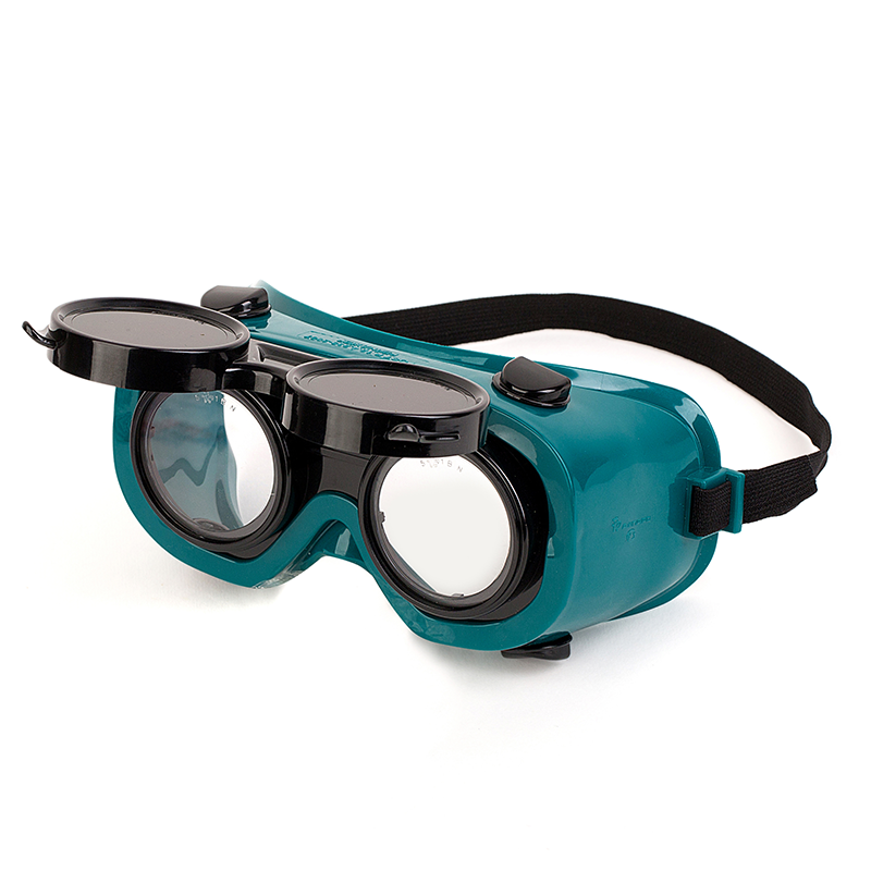 Универсальные очки газосварщика, которые защищают от слепящей яркости видимого и инфракрасного излучения и воздействия твёрдых частиц.