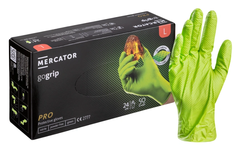 Перчатки нитриловые ОСОБОПРОЧНЫЕ с текстурированной ладонью GOGRIP, ЗЕЛЕНЫЕ