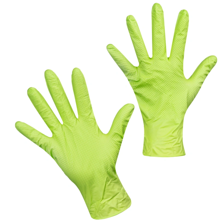 Универсальные защитные нитриловые перчатки с еще более толстыми стенками и ромбовидной структурой, обеспечивающие отличное сцепление и защиту при работе в масляной или влажной среде. Отчетливая нескользящая текстура с алмазной структурой увеличивает силу трения и обеспечивает стабильный захват, особенно в масляной и влажной среде. Они защищают руки от жидкостей, моющих средств и других химикатов, таких как жир и масла.