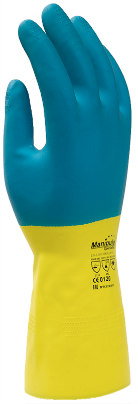 Cтойкие к кислотам, щелочам, растворителям, спиртам. Специальный слой неопрена на рабочей поверхности , увеличивает химическую и механическую стойкость,повышает морозоустойчивость. Анатомическая форма снижает усталость рук.